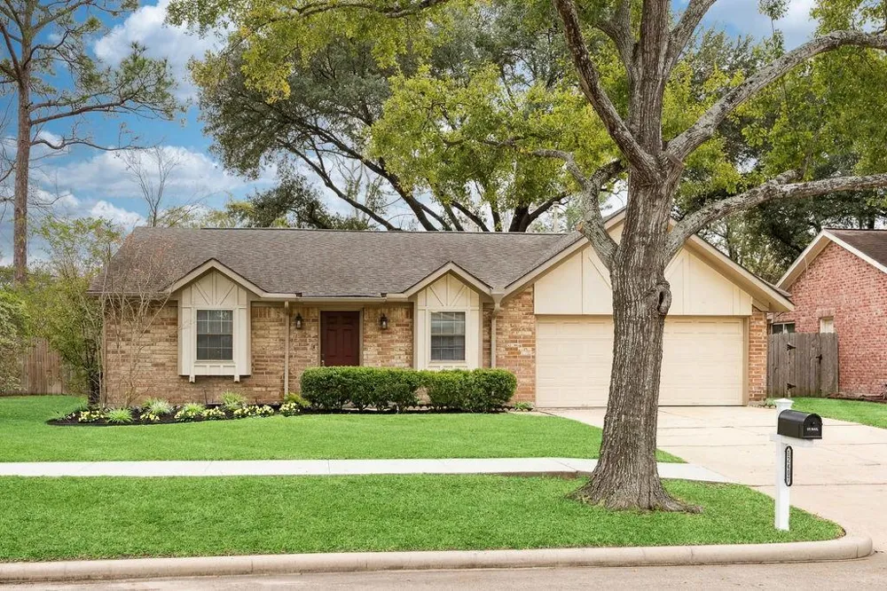 Welcome to 12407 Brandywyne, a charming one-story brick home offering 1,956 sq ft of comfortable, flexible living space. With 3 bedrooms & 2 bathrooms, the layout is functional & inviting. Upon entry, a formal living/dining area sits to the left, while a private home office or flex space is to the right. The heart of the home is the beautifully renovated kitchen (2024), featuring stainless steel appliances & opening seamlessly to a spacious family/dining area with high ceilings, ideal for everyday living. At the back of the home, a large sunroom adds bonus space - currently used as a second living area. The primary suite includes an ensuite bath with double sinks & a walk-in closet, while two secondary bedrooms share a full bath. Step outside to a generous backyard with patio, perfect for gatherings or relaxing outdoors. Residents enjoy access to 2 neighborhood pools, playgrounds, tennis & pickleball courts, & neighborhood patrol, creating an active, welcoming community to call home.