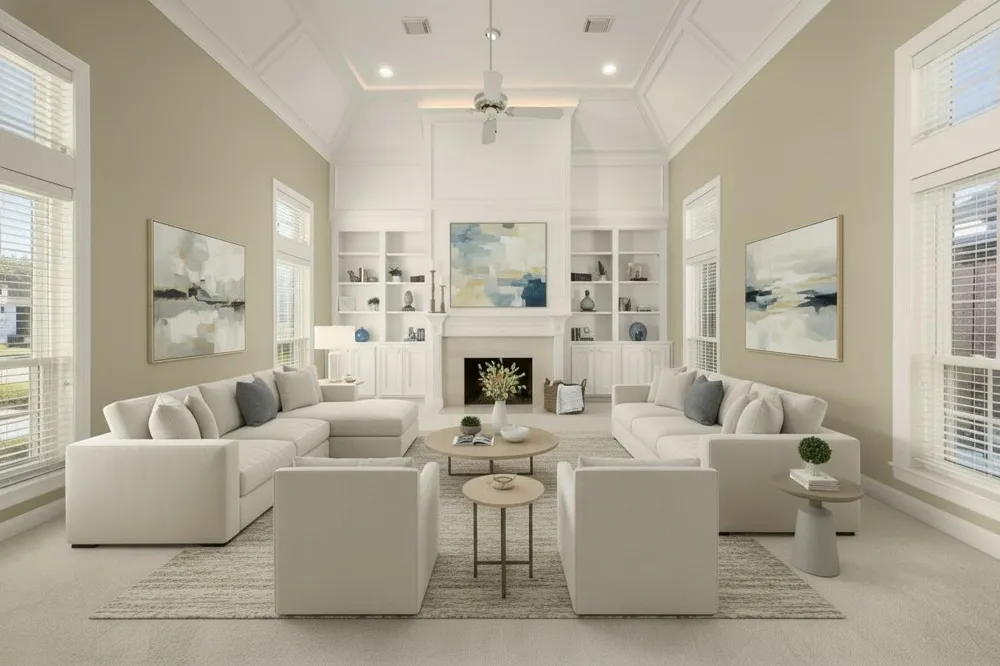 Step into elevated, low-maintenance ONE-STORY living in the exclusive Champions Glen neighborhood with this stunning David Taylor home, where soaring 14' gambrel ceilings crown the expansive family room with custom built-ins and a gas-log fireplace. Elegant formal dining features 12' gambrel ceilings and a butler’s door leading to the chef’s kitchen with GE Profile appliances, double ovens, granite counters, under-cabinet lighting, metal pot-and-pan pull-outs, and a lit built-in buffet. The expansive primary opens to a sunlit porch retreat with spa-like en-suite bath—dual sinks, jetted tub, separate shower, and a HUGE custom closet. Two additional bedroom/flex spaces offer walk-in closets. Plantation shutters, double-pane tilt-in windows, abundant storage, in-house utility room, oversized attached garage, and double-wide aggregate driveway. Quiet 97-home community minutes to medical, dining, shopping & major routes—249, Beltway 8, I-45 & 99. No flooding. Move-in ready!